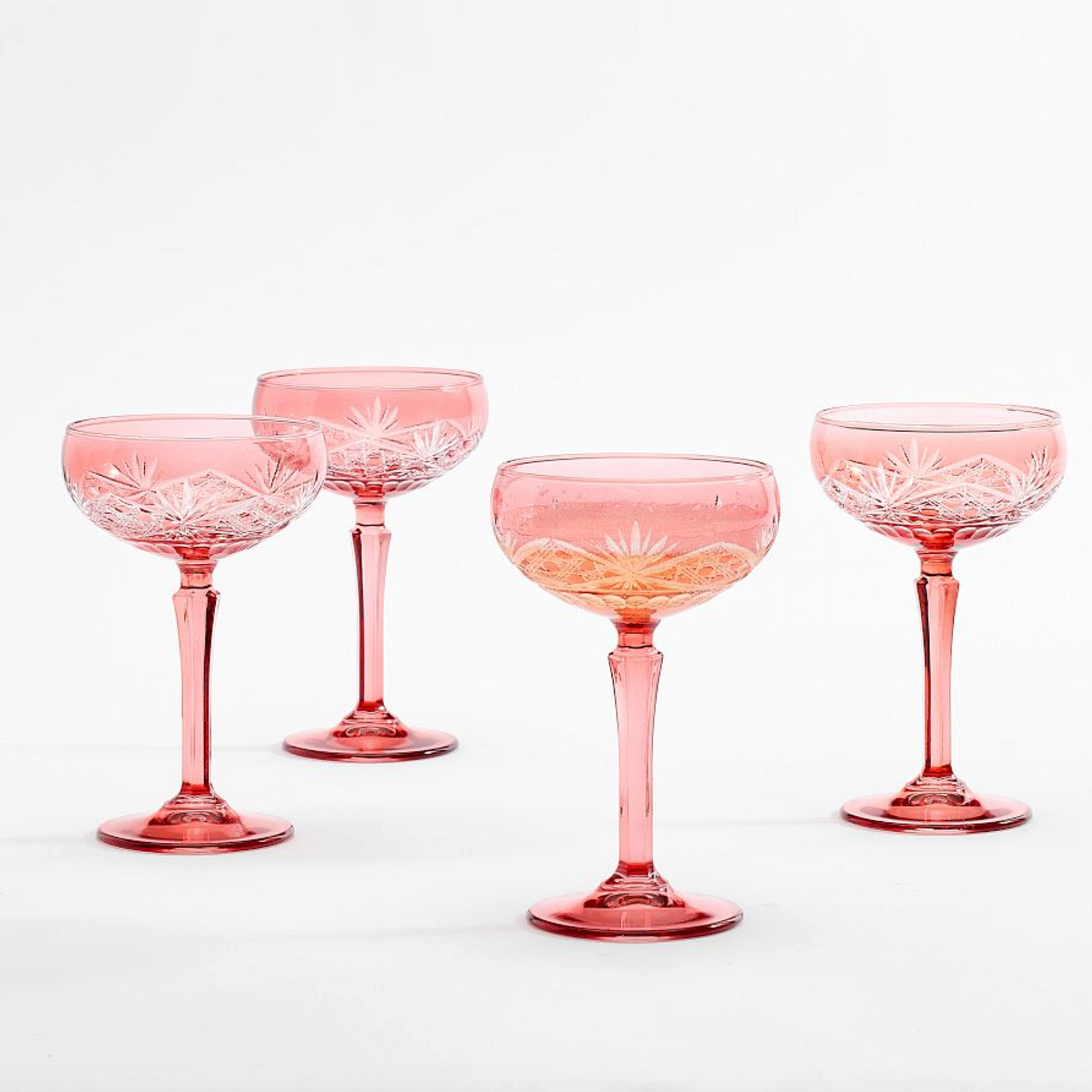 When it comes to drinking something sparkling, nothing’s more romantic than a coupe. Double the romance with these stunners in blush pink.