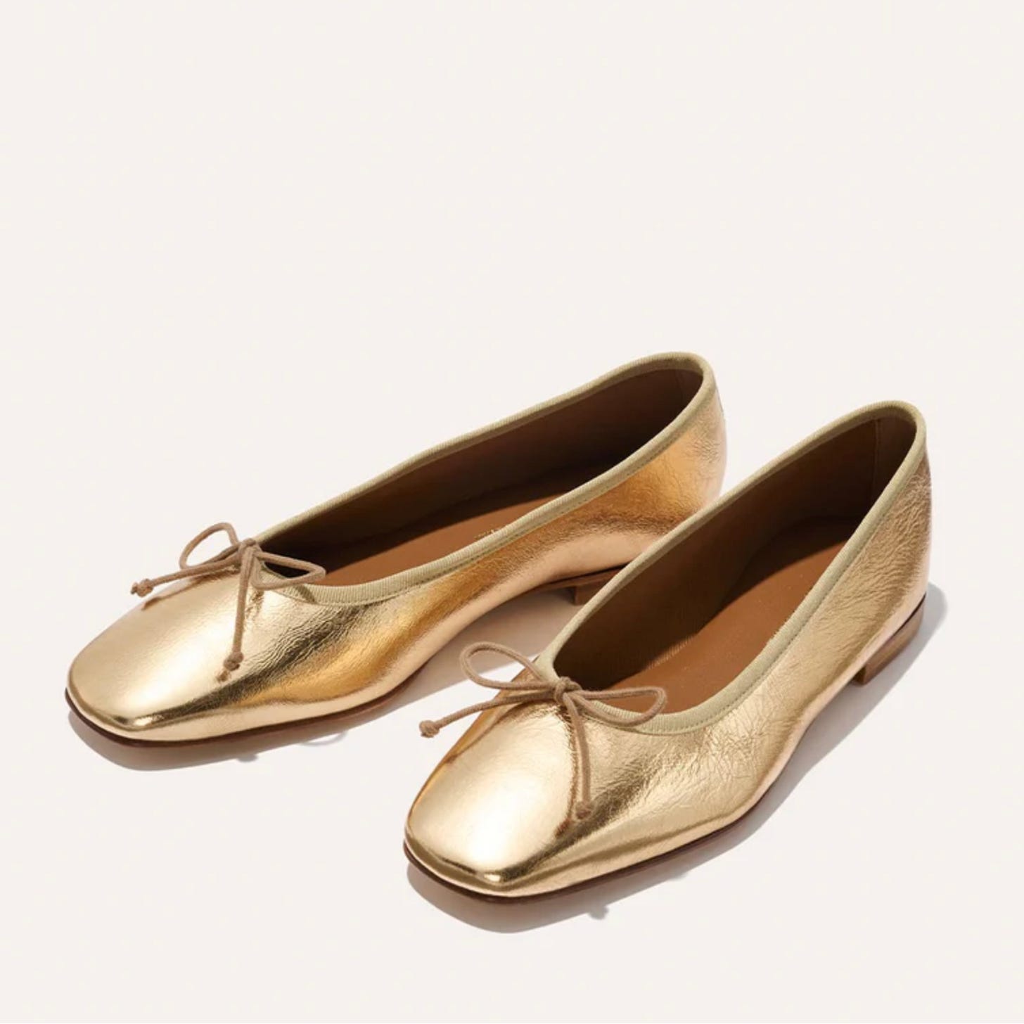 Founders Alexa Buckley and Sarah Pierson take the classic ballet flat up a notch in gold crinkle napa leather.